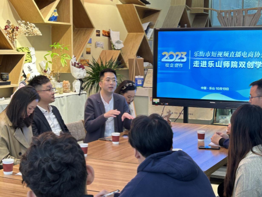 本网讯(文、图/张浩然 赵庆玥)2023年10月19日下午,为鼓励大学生积极创新创业,给大学生提供更好的舞台和资源,乐山师院双创学院邀请乐山市短视频直播电商协会来到孵化基地开展分享交流会。