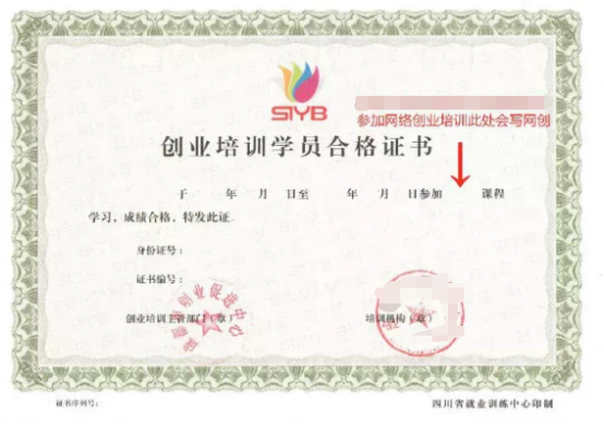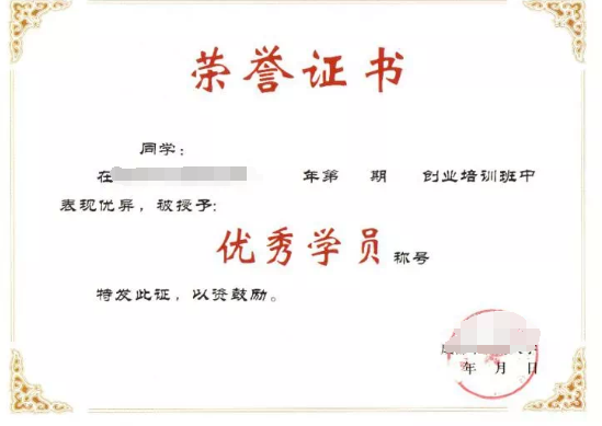 1、创业培训学员合格证书